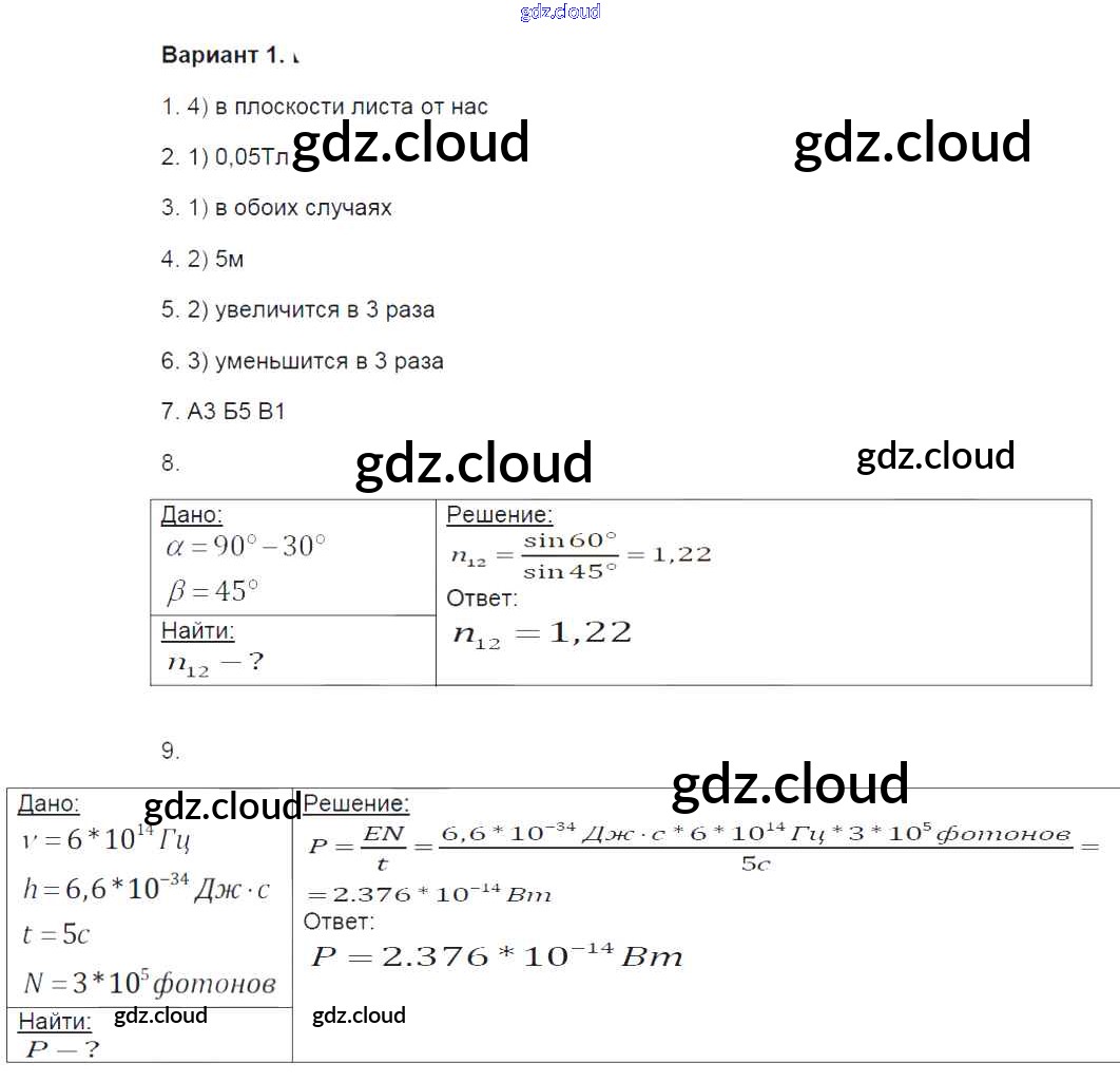 Ответ на задание 1 Контрольные и самостоятельные работы Физика за 9 (девятый) класс Громцева УМК 2017