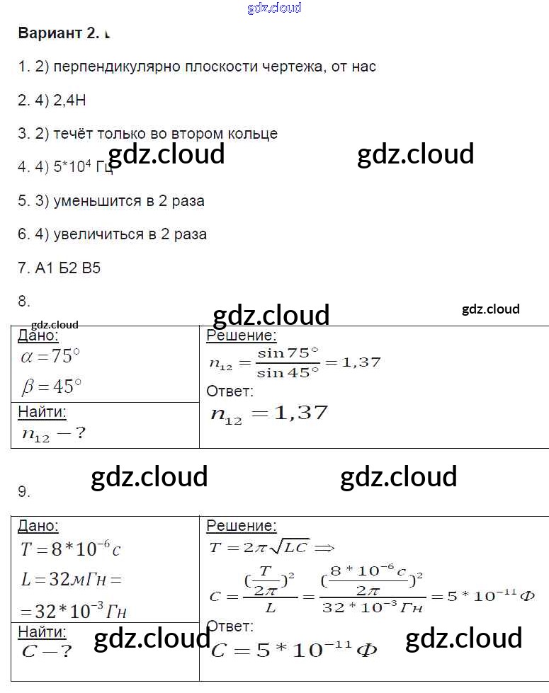 Ответ на задание 2 Контрольные и самостоятельные работы Физика за 9 (девятый) класс Громцева УМК 2017