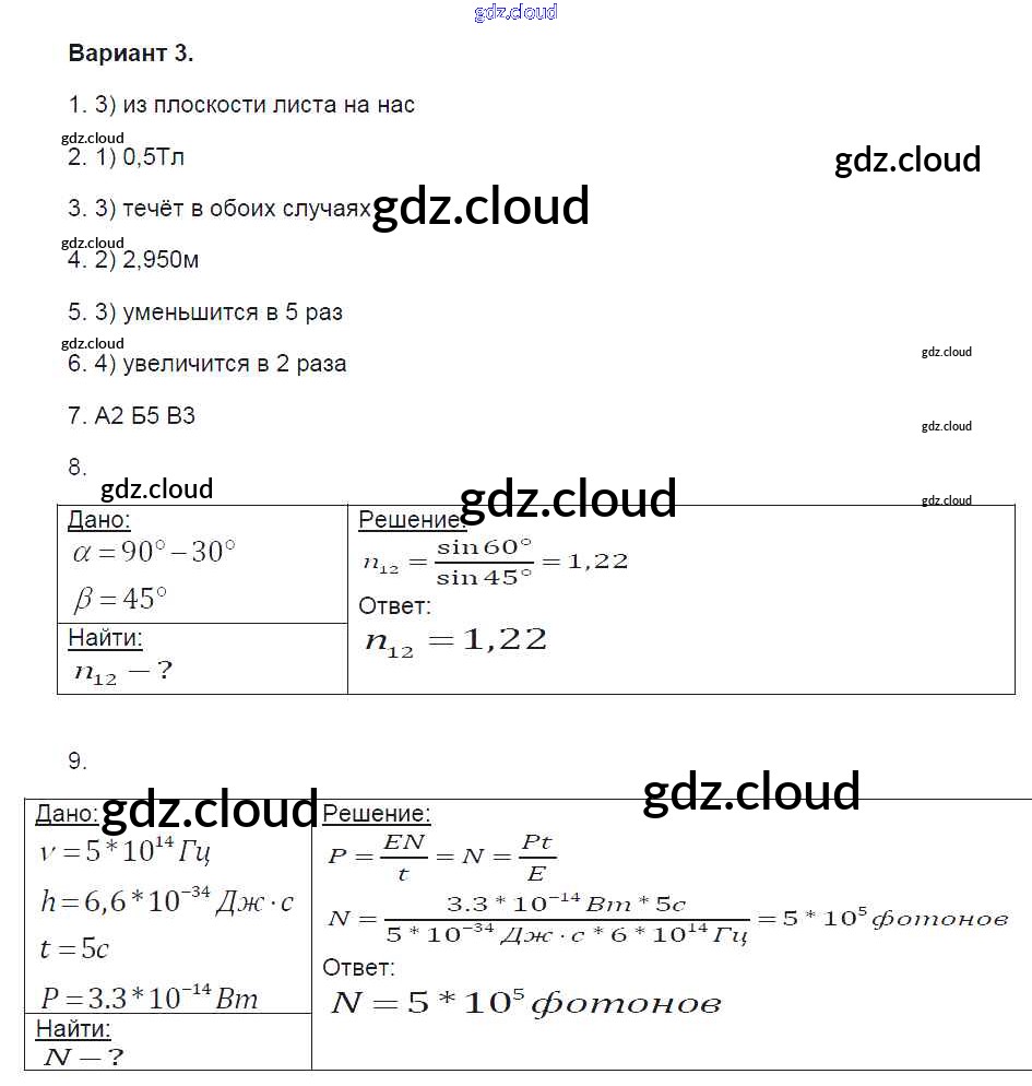 Глава 3. Варианты Ответы к контрольным работам по Физике 9 класс Контрольные и самостоятельные работы Громцева УМК Экзамен