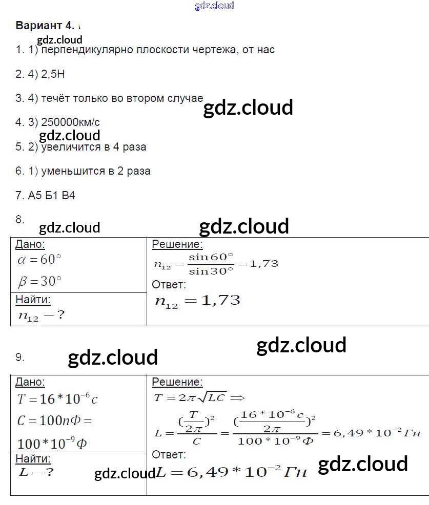 Глава 3. Варианты Ответы к контрольным работам по Физике 9 класс Контрольные и самостоятельные работы Громцева УМК Экзамен
