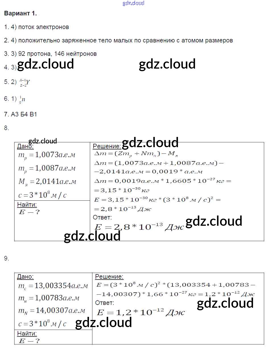 Глава 4. Варианты Ответы к контрольным работам по Физике 9 класс Контрольные и самостоятельные работы Громцева УМК Экзамен