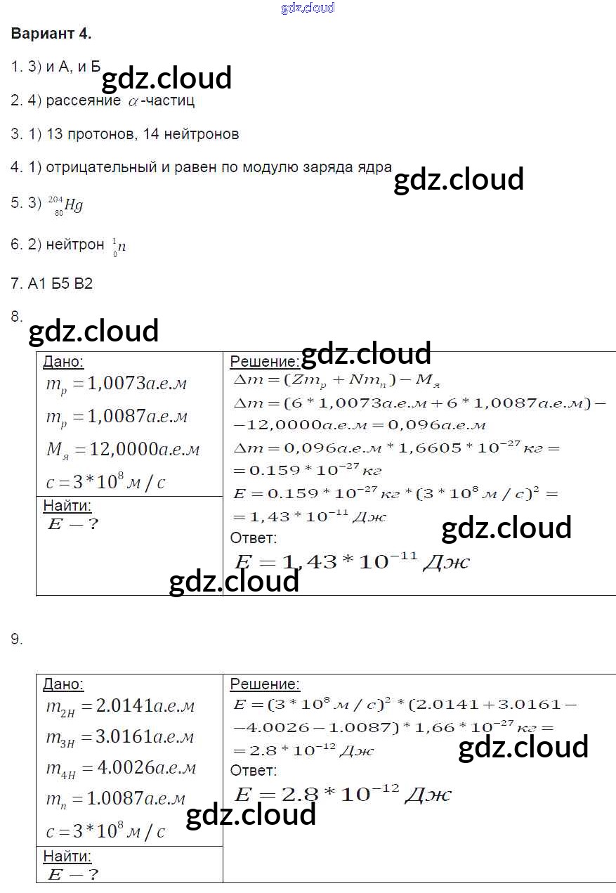 Глава 4. Варианты Ответы к контрольным работам по Физике 9 класс Контрольные и самостоятельные работы Громцева УМК Экзамен
