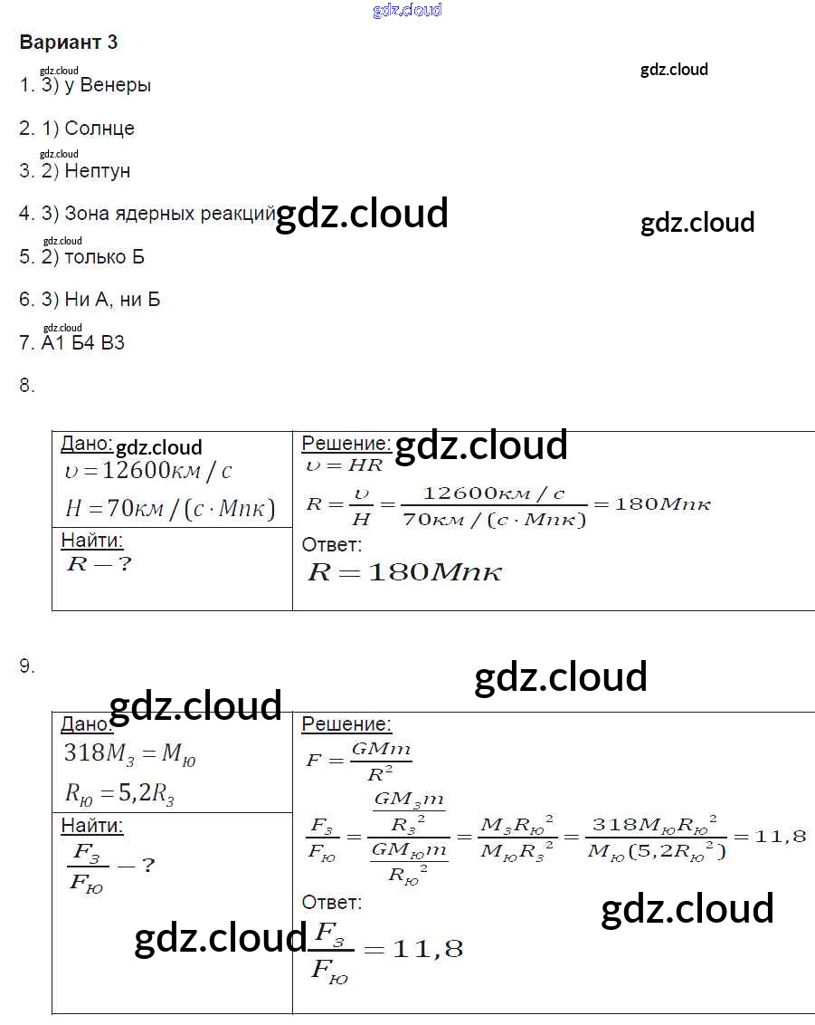 Ответ на задание 3 Контрольные и самостоятельные работы Физика за 9 (девятый) класс Громцева УМК 2017