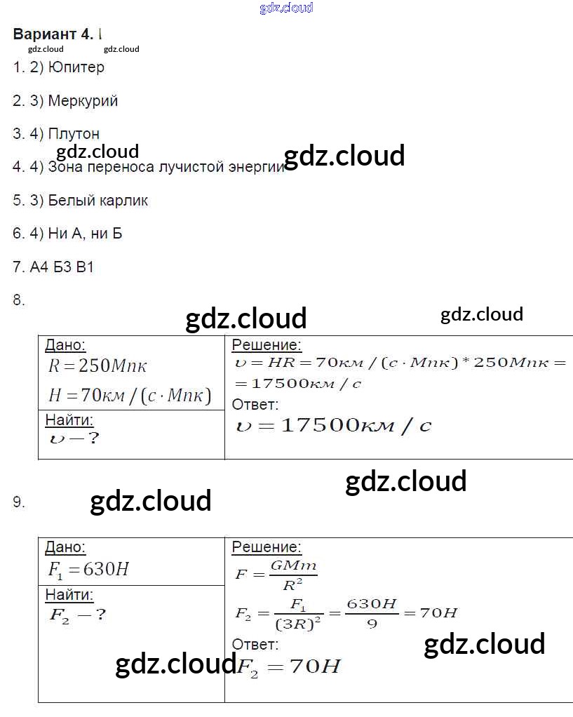 Ответ на задание 4 Контрольные и самостоятельные работы Физика за 9 (девятый) класс Громцева УМК 2017