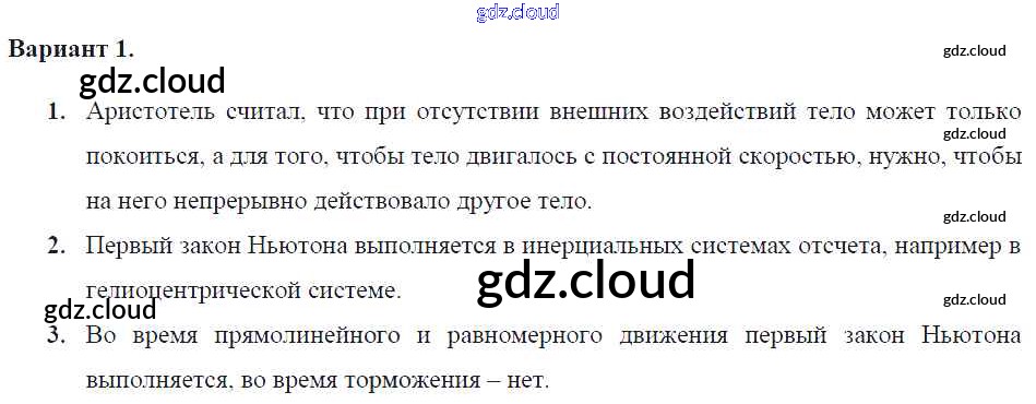 Ответ на задание 1 Самостоятельные и контрольные работы Физика за 9 (девятый) класс Марон УМК 2018