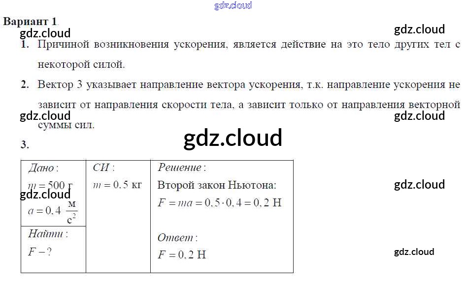 Ответ на задание 1 Самостоятельные и контрольные работы Физика за 9 (девятый) класс Марон УМК 2018