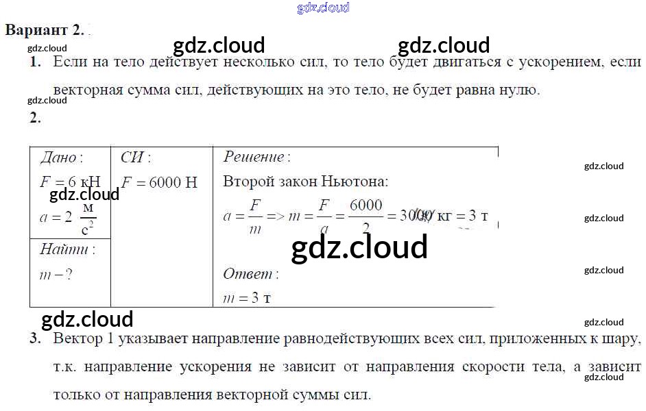 Ответ на задание 2 Самостоятельные и контрольные работы Физика за 9 (девятый) класс Марон УМК 2018