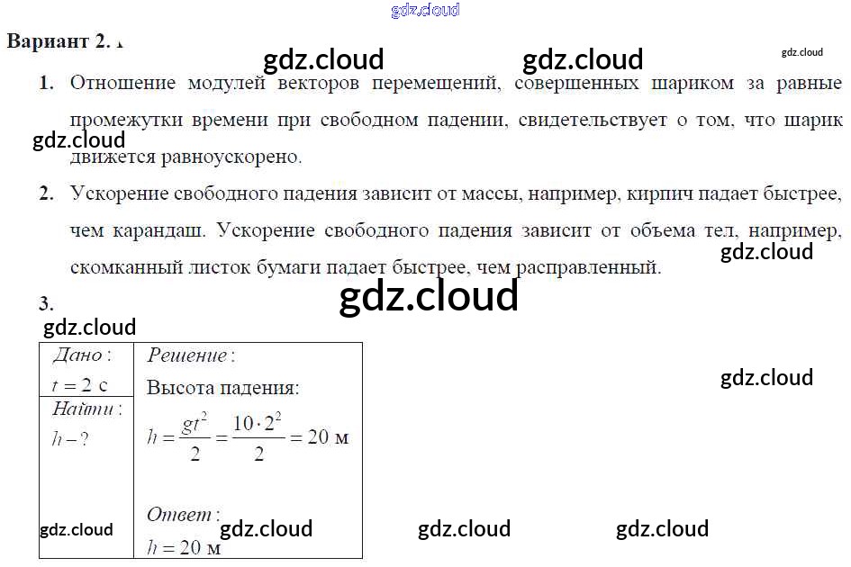 Ответ на задание 2 Самостоятельные и контрольные работы Физика за 9 (девятый) класс Марон УМК 2018