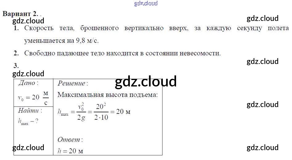 Ответ на задание 2 Самостоятельные и контрольные работы Физика за 9 (девятый) класс Марон УМК 2018