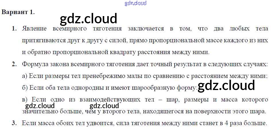Ответ на задание 1 Самостоятельные и контрольные работы Физика за 9 (девятый) класс Марон УМК 2018