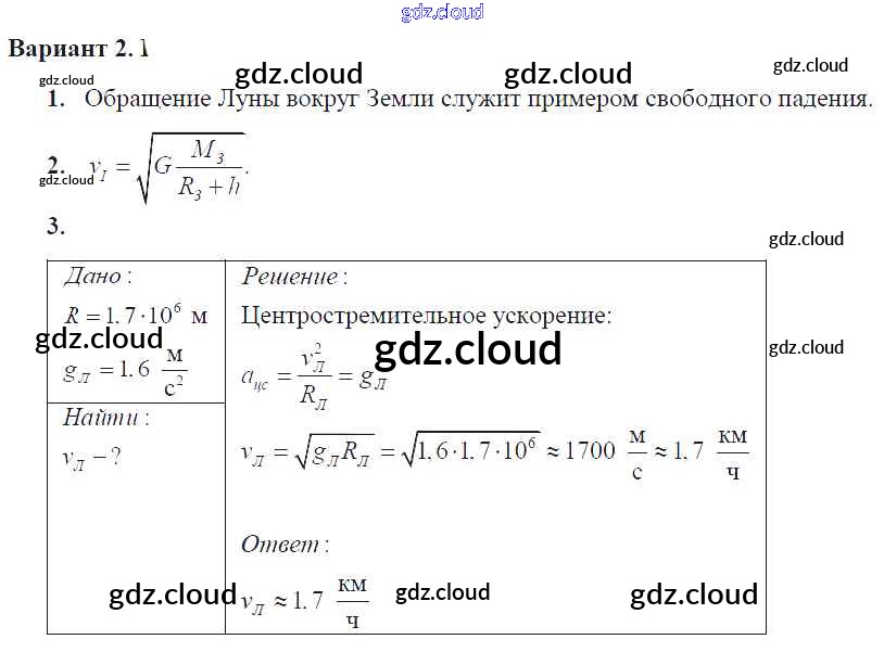 Ответ на задание 2 Самостоятельные и контрольные работы Физика за 9 (девятый) класс Марон УМК 2018
