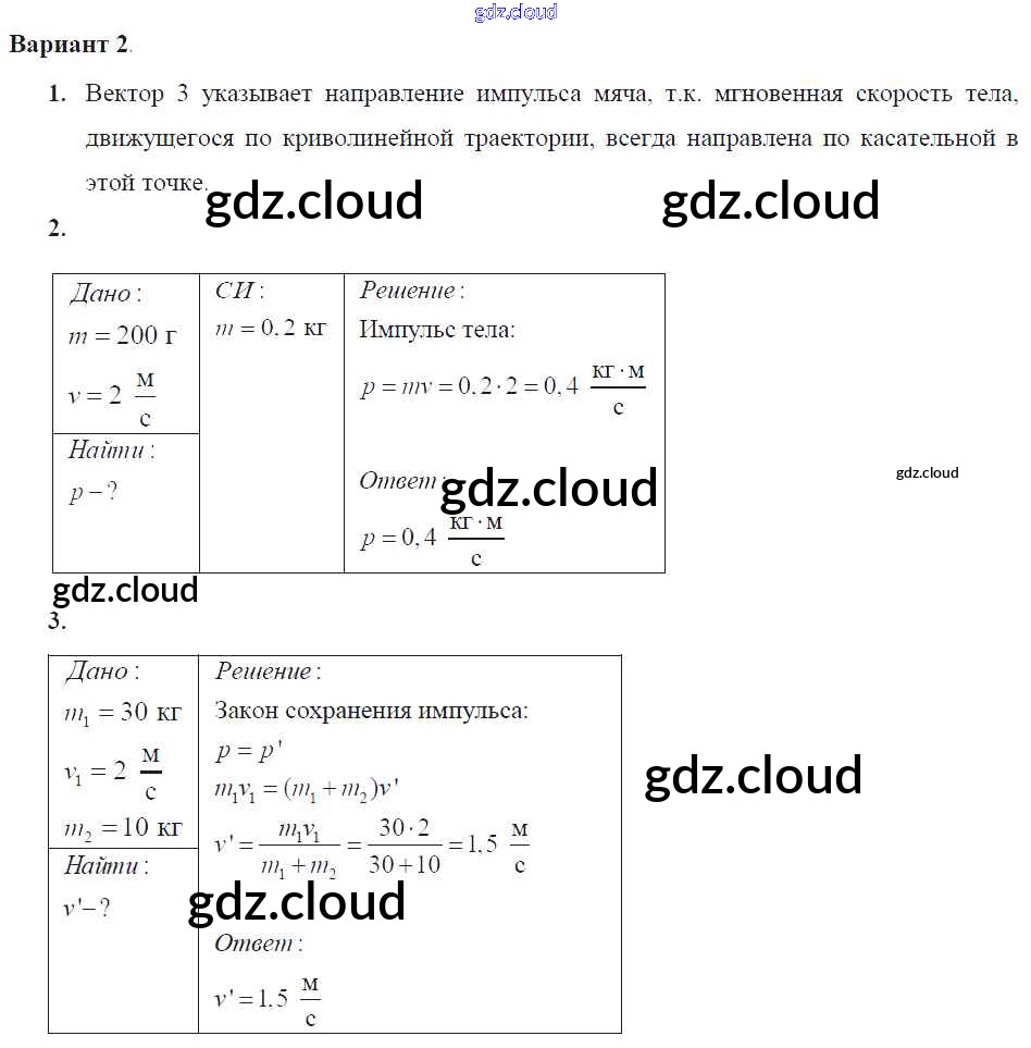 Ответ на задание 2 Самостоятельные и контрольные работы Физика за 9 (девятый) класс Марон УМК 2018