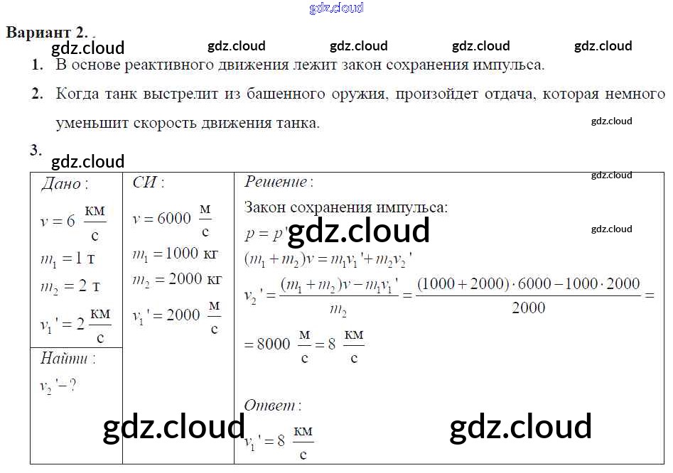Ответ на задание 2 Самостоятельные и контрольные работы Физика за 9 (девятый) класс Марон УМК 2018