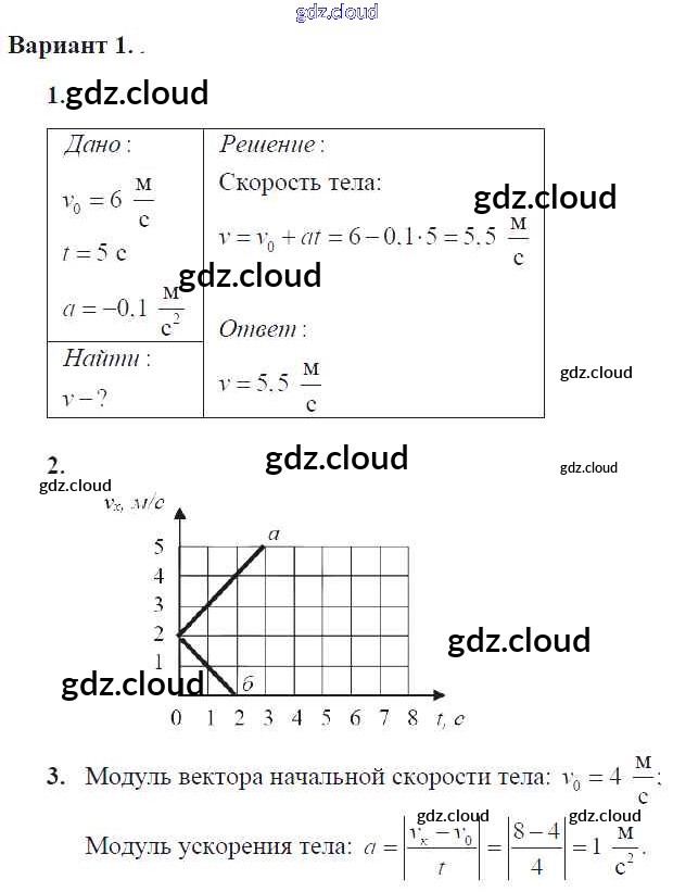 Ответ на задание 1 Самостоятельные и контрольные работы Физика за 9 (девятый) класс Марон УМК 2018