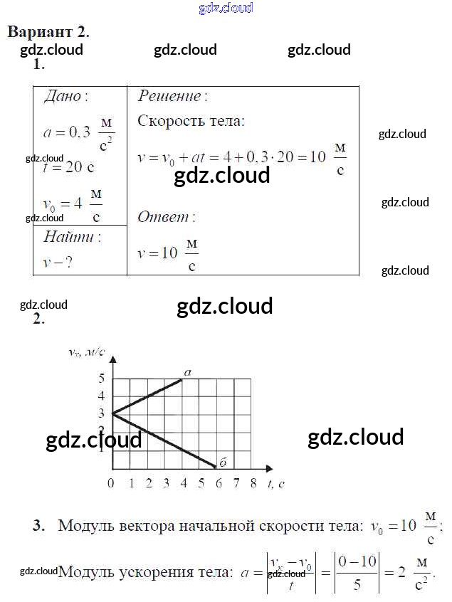 СР-6. Варианты Ответы к самостоятельным работам по Физике 9 класс Самостоятельные и контрольные работы Марон УМК Дрофа
