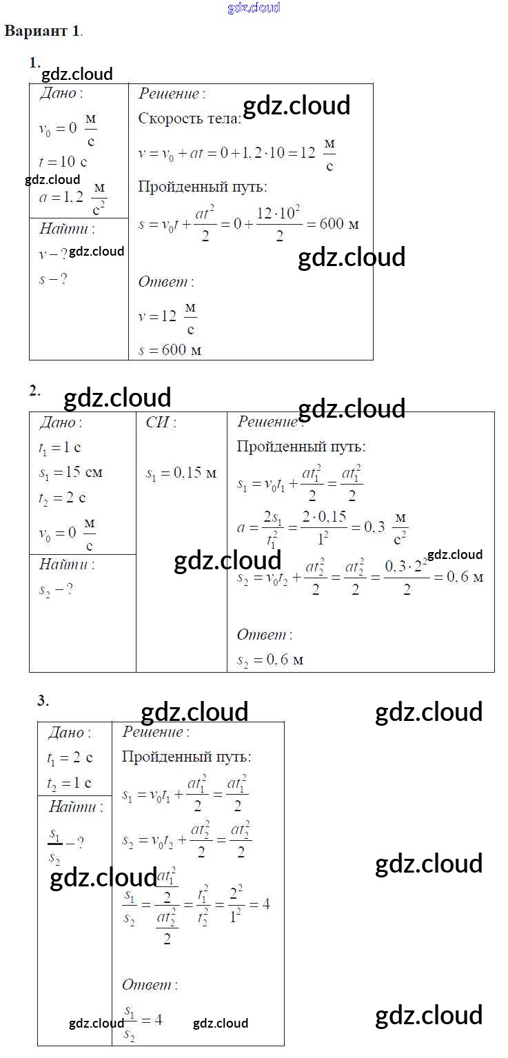 Ответ на задание 1 Самостоятельные и контрольные работы Физика за 9 (девятый) класс Марон УМК 2018