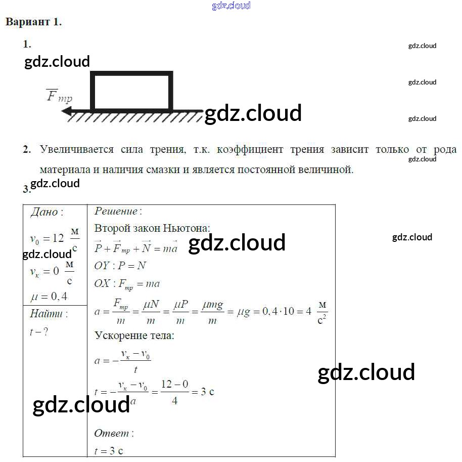 СР-2. Варианты Ответы к дополнительным самостоятельным работам по Физике 9 класс Самостоятельные и контрольные работы Марон УМК Дрофа