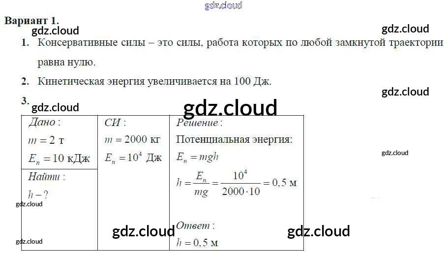 Ответ на задание 1 Самостоятельные и контрольные работы Физика за 9 (девятый) класс Марон УМК 2018