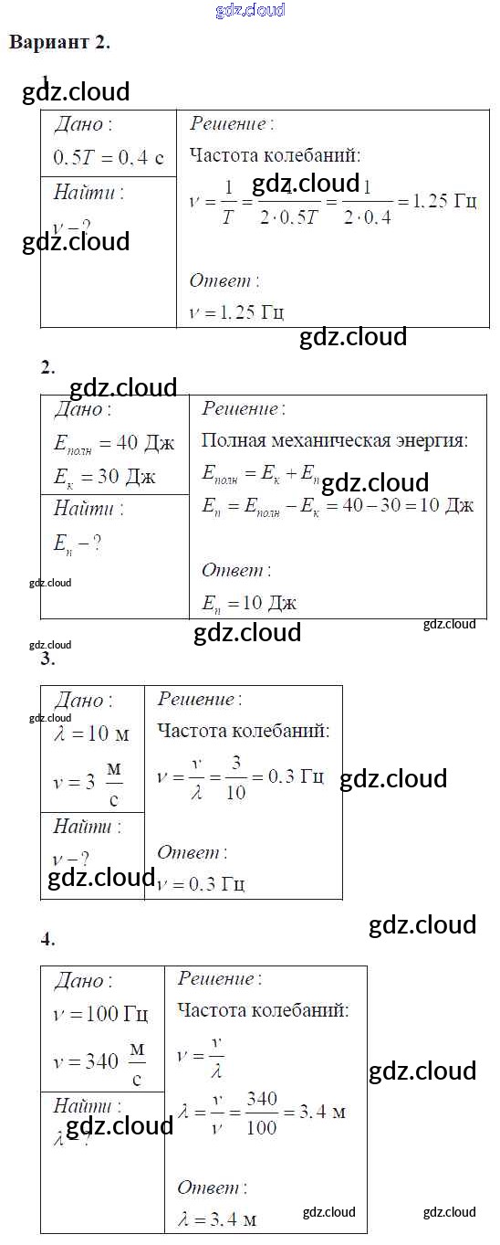КР-2. Варианты Ответы к контрольным работам по Физике 9 класс Самостоятельные и контрольные работы Марон УМК Дрофа