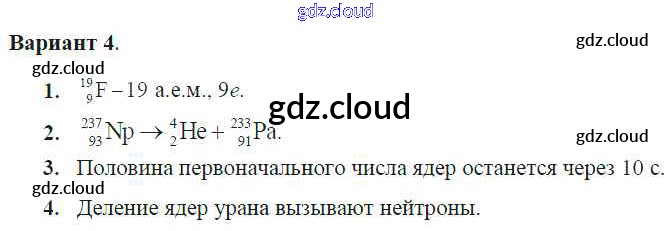КР-4. Варианты Ответы к контрольным работам по Физике 9 класс Самостоятельные и контрольные работы Марон УМК Дрофа