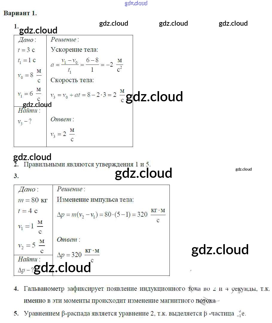 КР-6. Варианты Ответы к контрольным работам по Физике 9 класс Самостоятельные и контрольные работы Марон УМК Дрофа