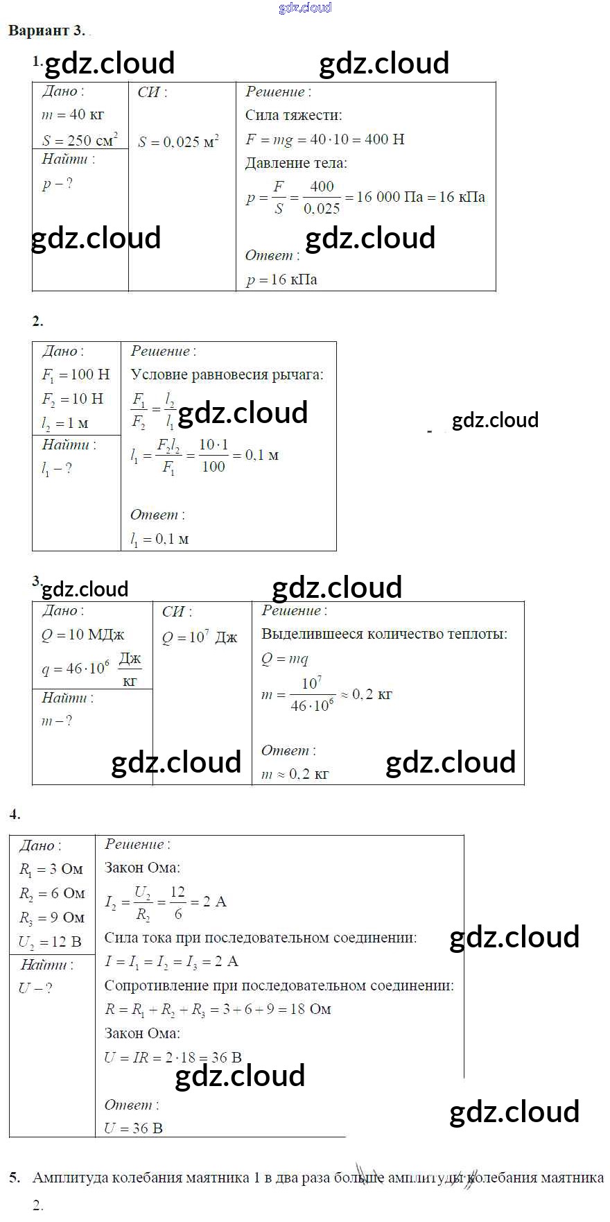 КР-7. Варианты Ответы к контрольным работам по Физике 9 класс Самостоятельные и контрольные работы Марон УМК Дрофа