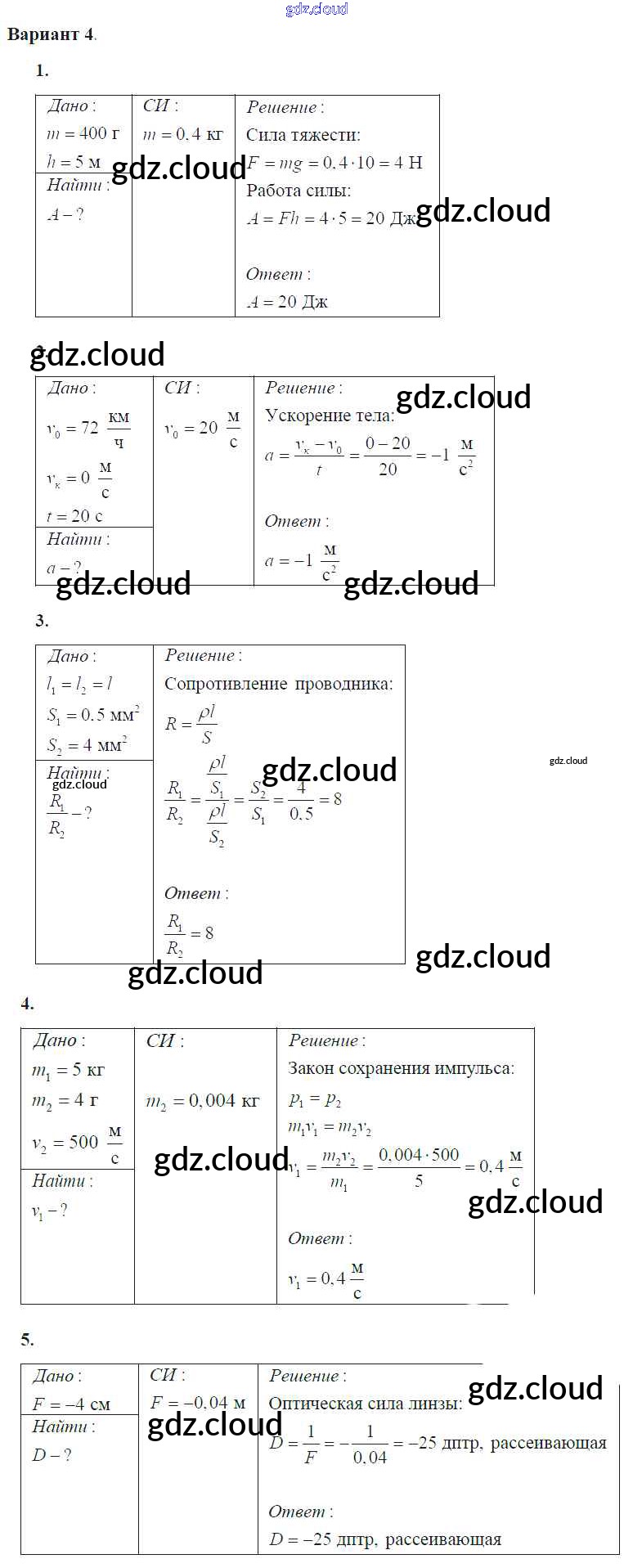 Ответ на задание 4 Самостоятельные и контрольные работы Физика за 9 (девятый) класс Марон УМК 2018