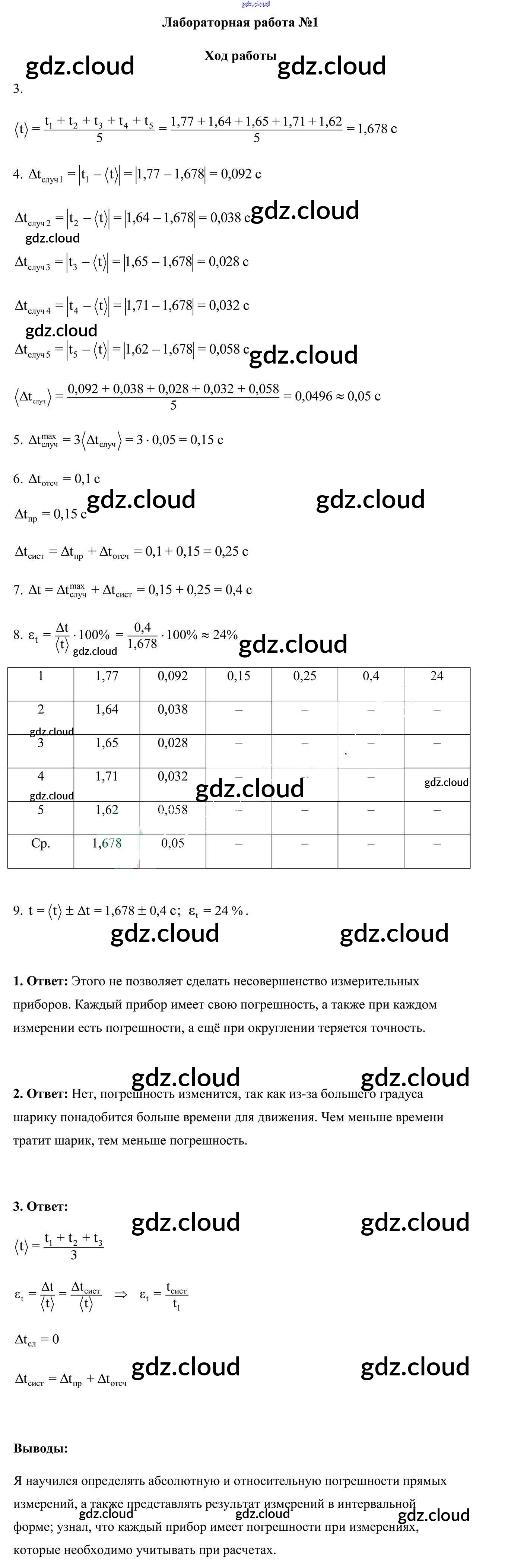 Ответ на задание №1 Лабораторные работы Физика за 9 (девятый) класс Исаченкова, Жолнеревич, Медведь 2016