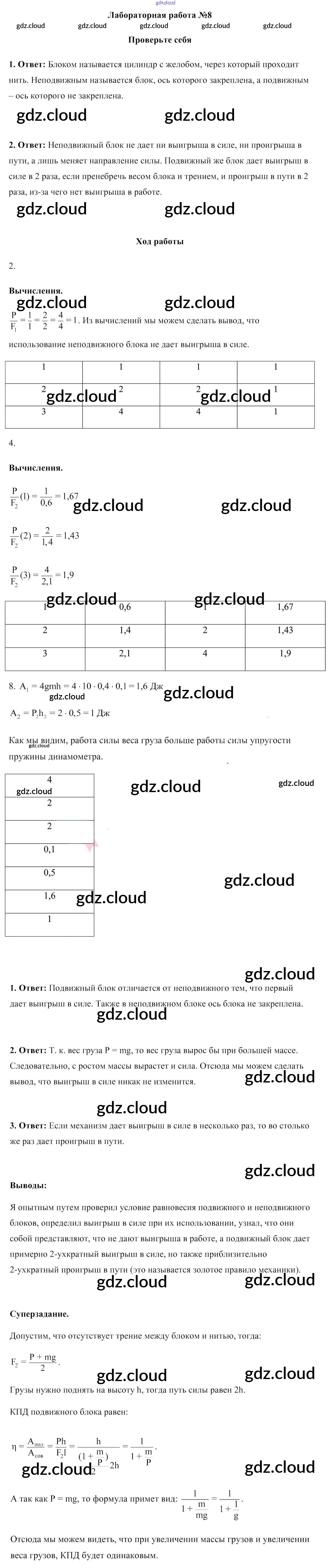 Ответ на задание №8 Лабораторные работы Физика за 9 (девятый) класс Исаченкова, Жолнеревич, Медведь 2016