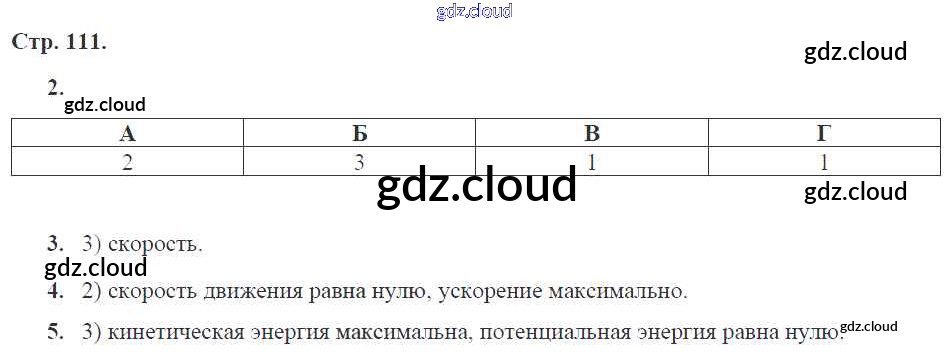 Ответ на задание 111 Рабочая тетрадь Физика за 9 (девятый) класс Касьянов, Дмитриева УМК 2017 ФГОС онлайн и без номера телефона.