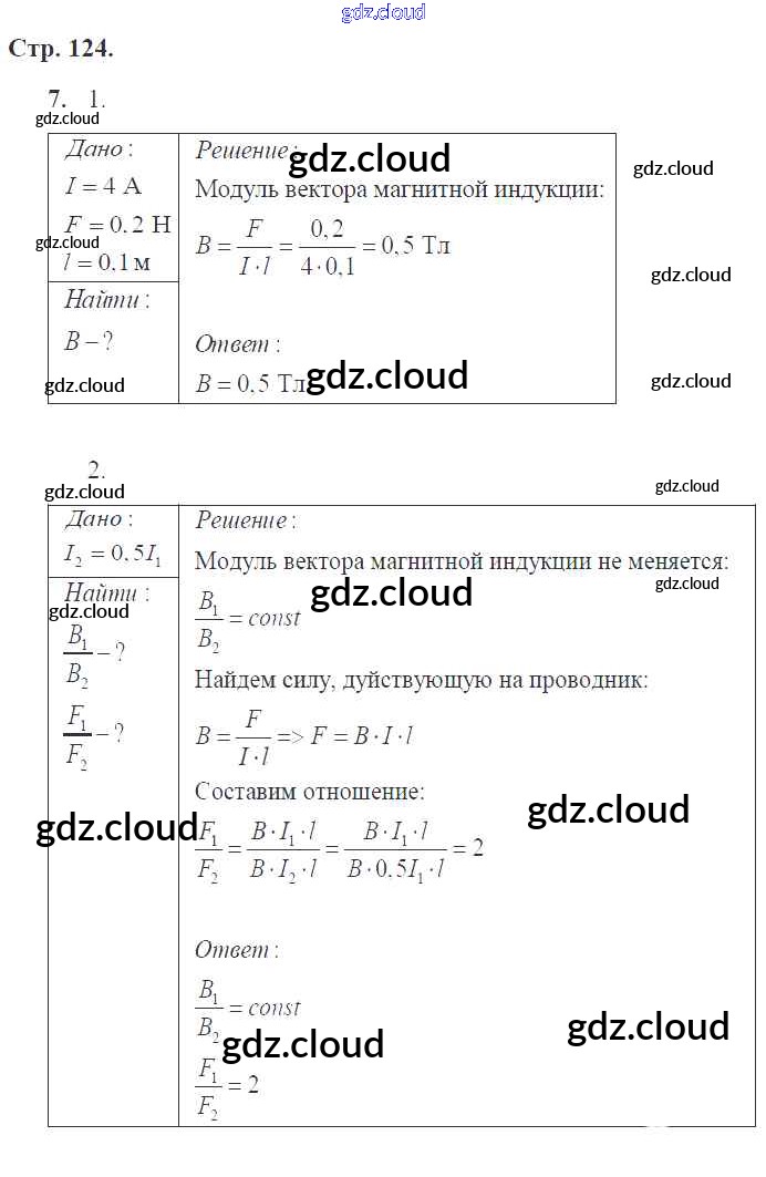 Ответ на задание 124 Рабочая тетрадь Физика за 9 (девятый) класс Касьянов, Дмитриева УМК 2017 ФГОС онлайн и без номера телефона.
