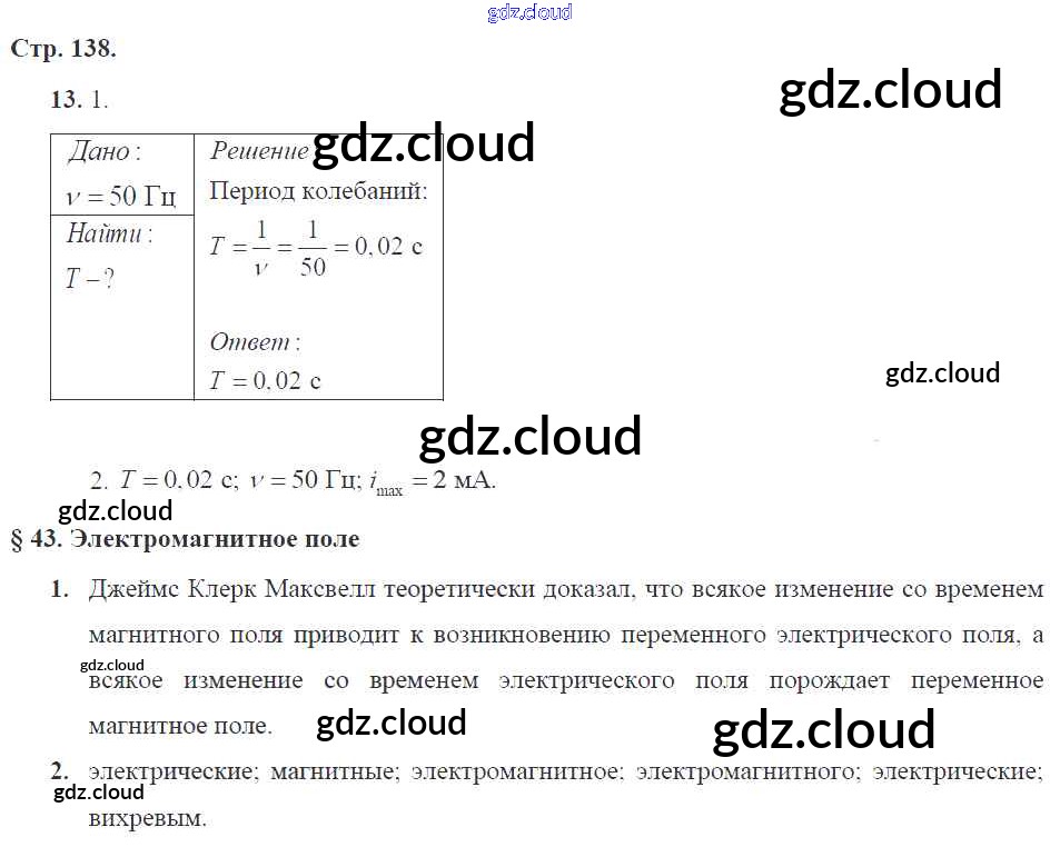 Ответ на задание 138 Рабочая тетрадь Физика за 9 (девятый) класс Касьянов, Дмитриева УМК 2017 ФГОС онлайн и без номера телефона.
