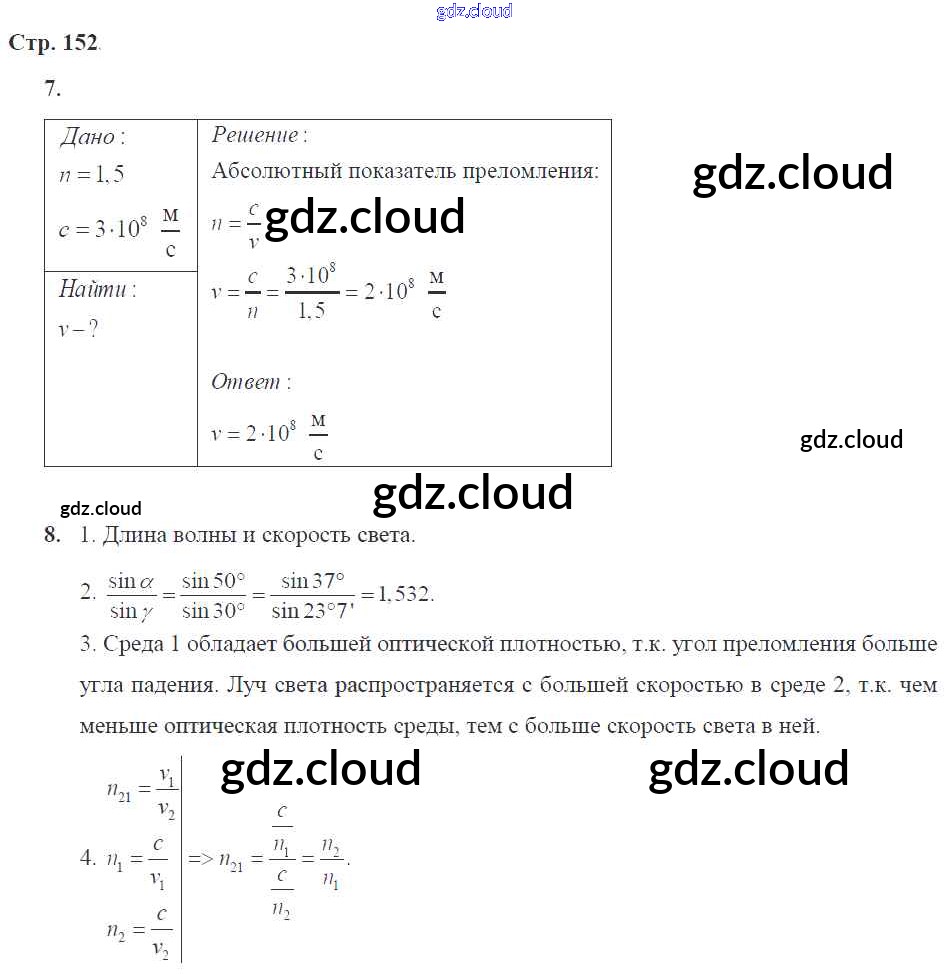 Ответ на задание 152 Рабочая тетрадь Физика за 9 (девятый) класс Касьянов, Дмитриева УМК 2017 ФГОС онлайн и без номера телефона.