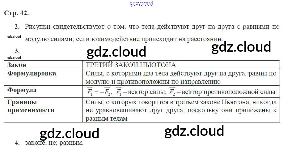Ответ на задание 42 Рабочая тетрадь Физика за 9 (девятый) класс Касьянов, Дмитриева УМК 2017 ФГОС онлайн и без номера телефона.