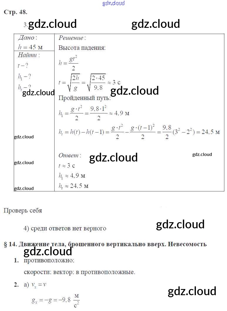 Ответ на задание 48 Рабочая тетрадь Физика за 9 (девятый) класс Касьянов, Дмитриева УМК 2017 ФГОС онлайн и без номера телефона.