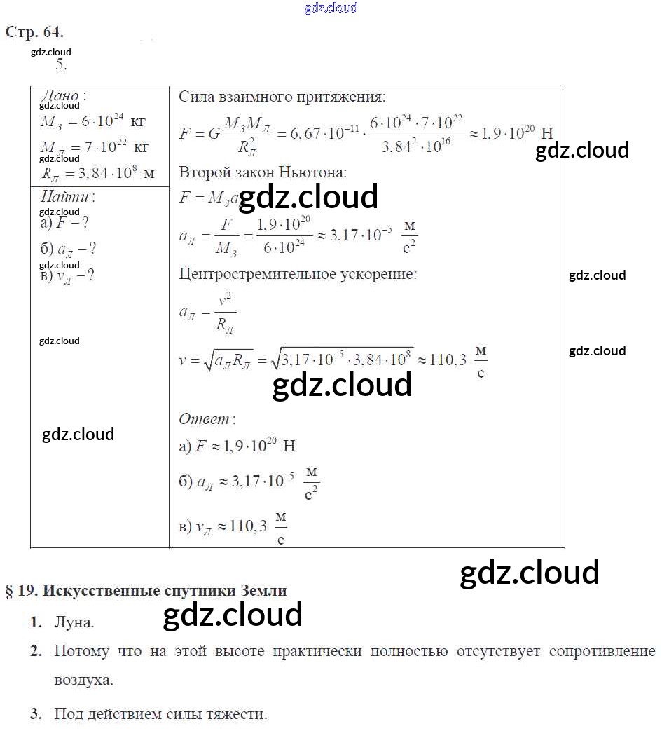 Ответ на задание 64 Рабочая тетрадь Физика за 9 (девятый) класс Касьянов, Дмитриева УМК 2017 ФГОС онлайн и без номера телефона.