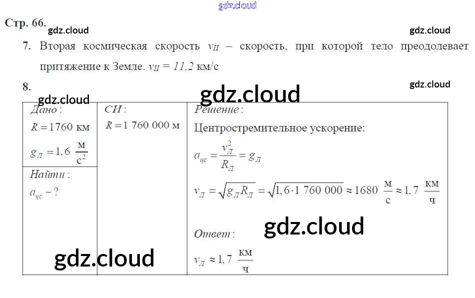Ответ на задание 66 Рабочая тетрадь Физика за 9 (девятый) класс Касьянов, Дмитриева УМК 2017 ФГОС онлайн и без номера телефона.