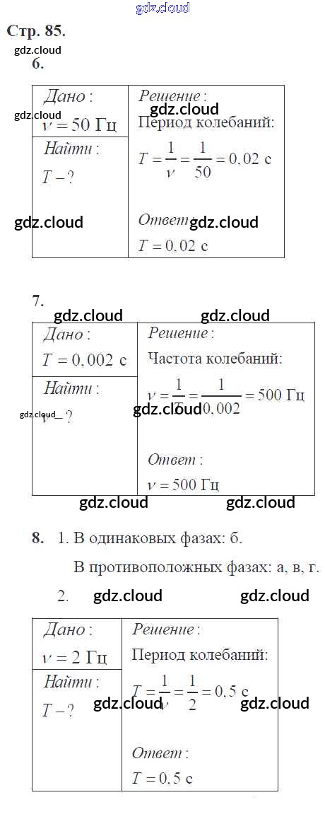 Ответ на задание 85 Рабочая тетрадь Физика за 9 (девятый) класс Касьянов, Дмитриева УМК 2017 ФГОС онлайн и без номера телефона.