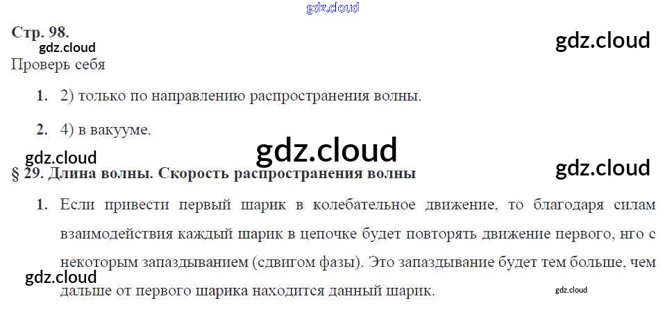 Ответ на задание 98 Рабочая тетрадь Физика за 9 (девятый) класс Касьянов, Дмитриева УМК 2017 ФГОС онлайн и без номера телефона.