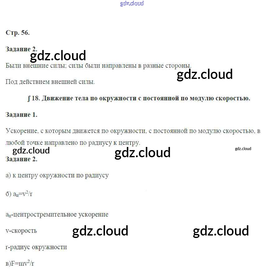 Ответ на задание 56 Рабочая тетрадь Физика за 9 (девятый) класс Перышкин, Лонцова УМК 2017 ФГОС онлайн и без номера телефона.