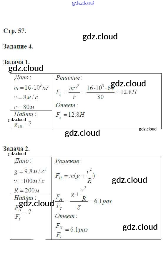 Ответ на задание 57 Рабочая тетрадь Физика за 9 (девятый) класс Перышкин, Лонцова УМК 2017 ФГОС онлайн и без номера телефона.