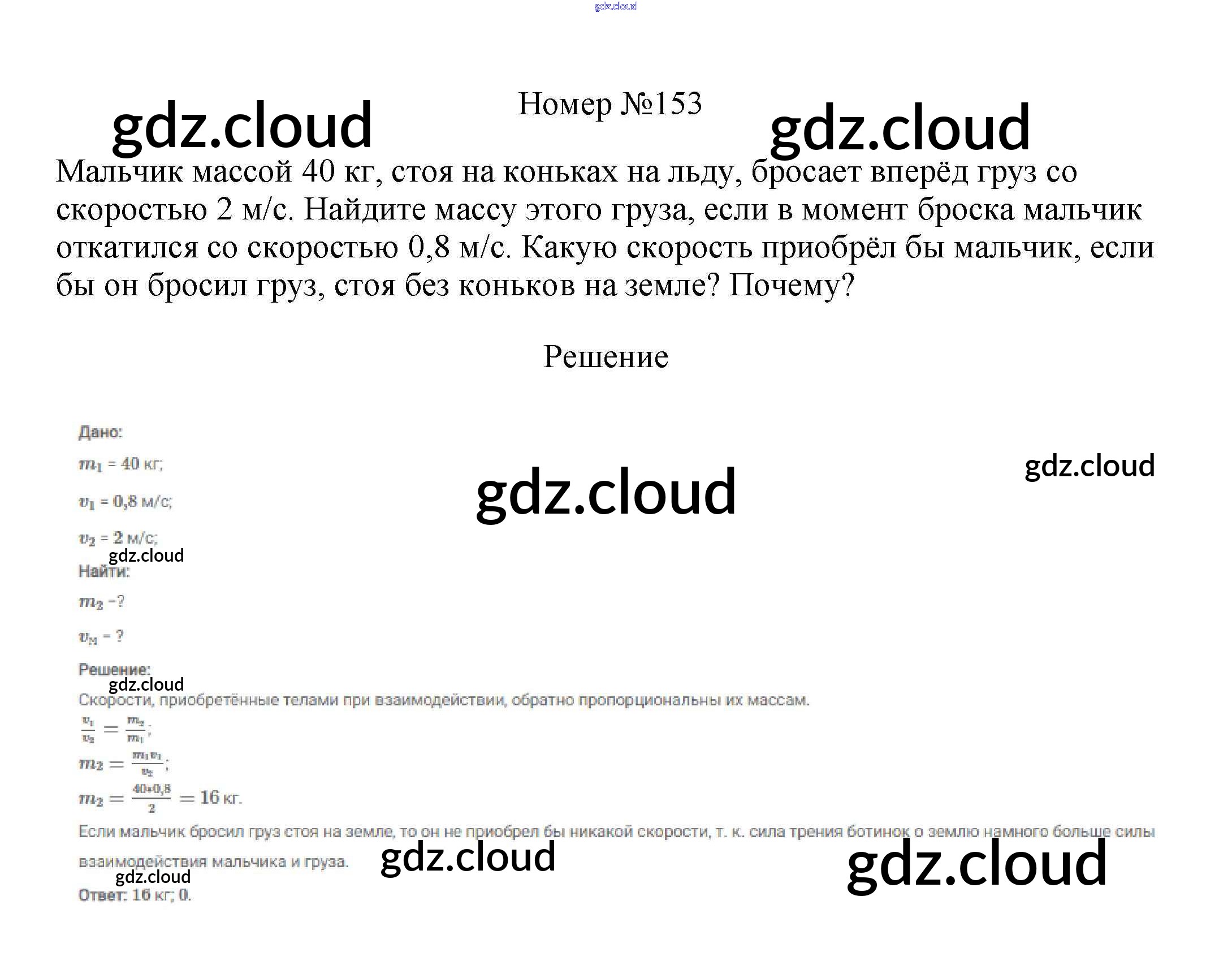 Ответ на задание 153 Сборник вопросов и задач Физика за 7, 8, 9 (седьмой, восьмой, девятый) класс Марон, Позойский Вертикаль 2013