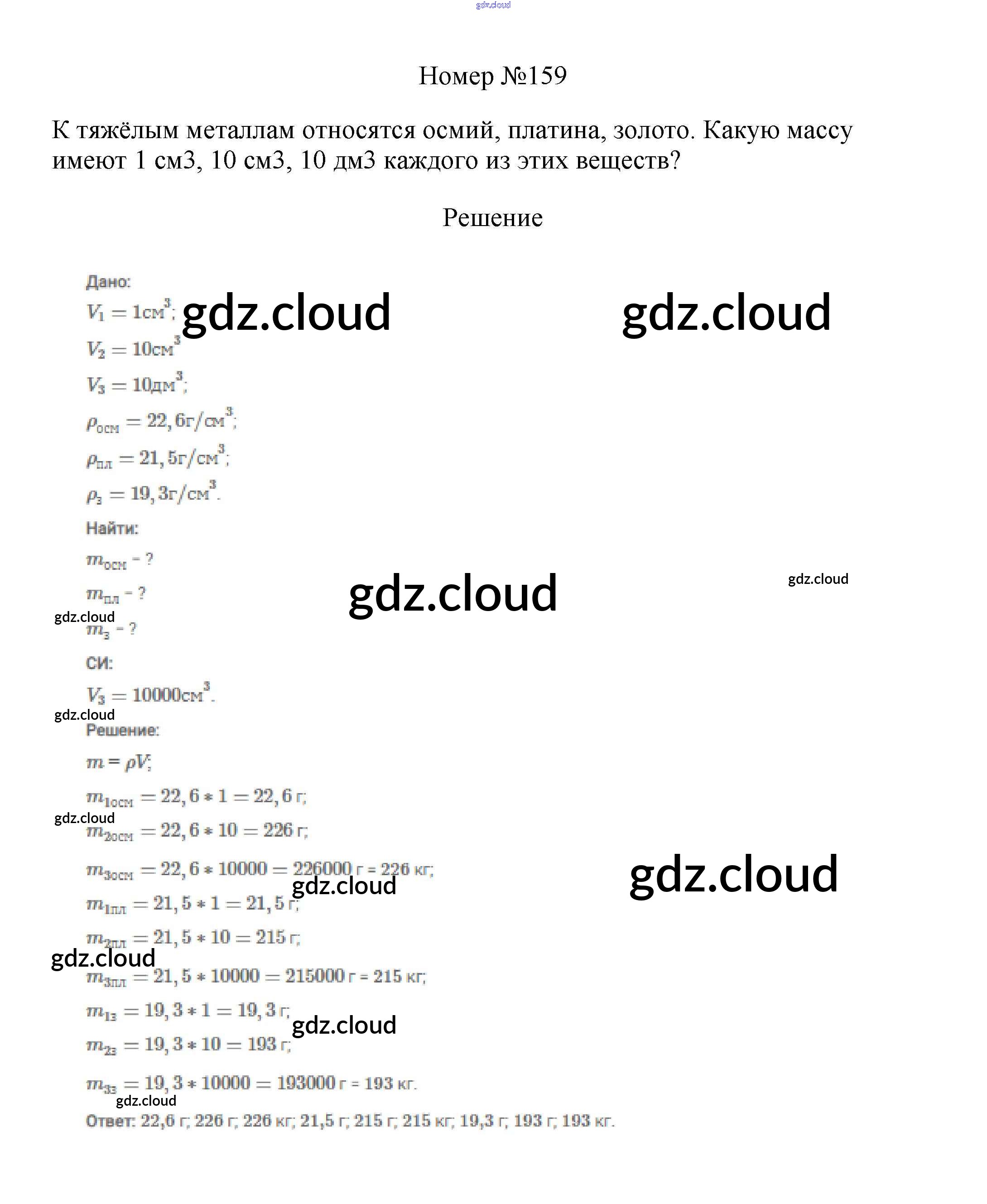 Ответ на задание 159 Сборник вопросов и задач Физика за 7, 8, 9 (седьмой, восьмой, девятый) класс Марон, Позойский Вертикаль 2013