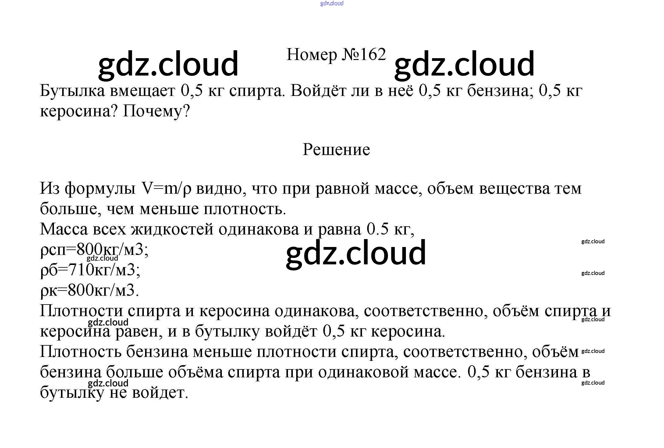 Ответ на задание 162 Сборник вопросов и задач Физика за 7, 8, 9 (седьмой, восьмой, девятый) класс Марон, Позойский Вертикаль 2013