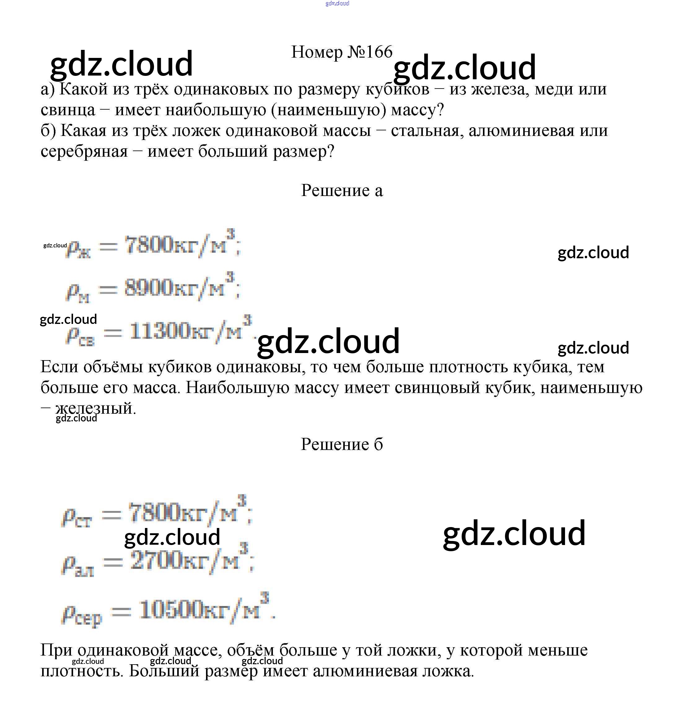 Ответ на задание 166 Сборник вопросов и задач Физика за 7, 8, 9 (седьмой, восьмой, девятый) класс Марон, Позойский Вертикаль 2013