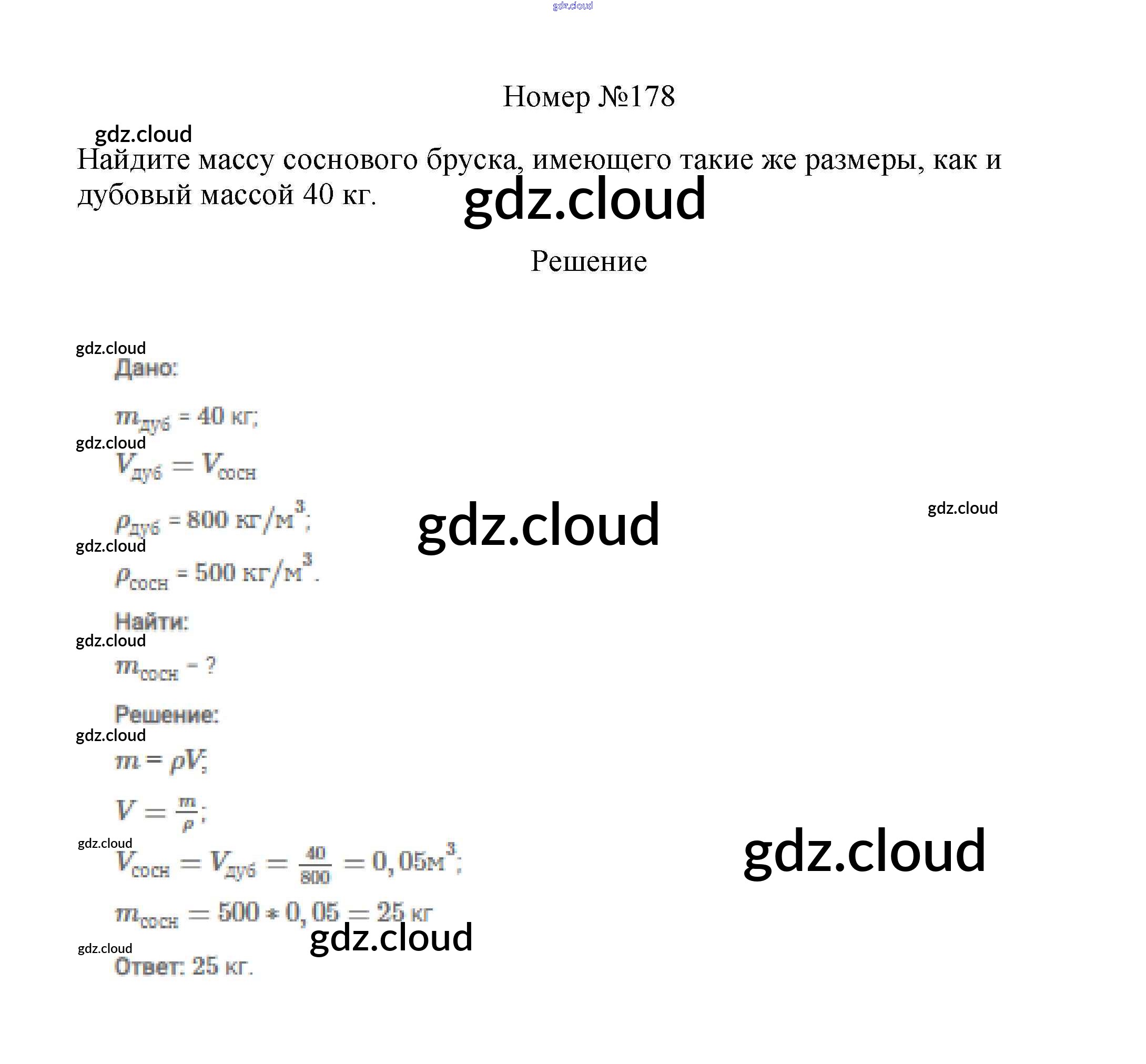 Ответ на задание 178 Сборник вопросов и задач Физика за 7, 8, 9 (седьмой, восьмой, девятый) класс Марон, Позойский Вертикаль 2013