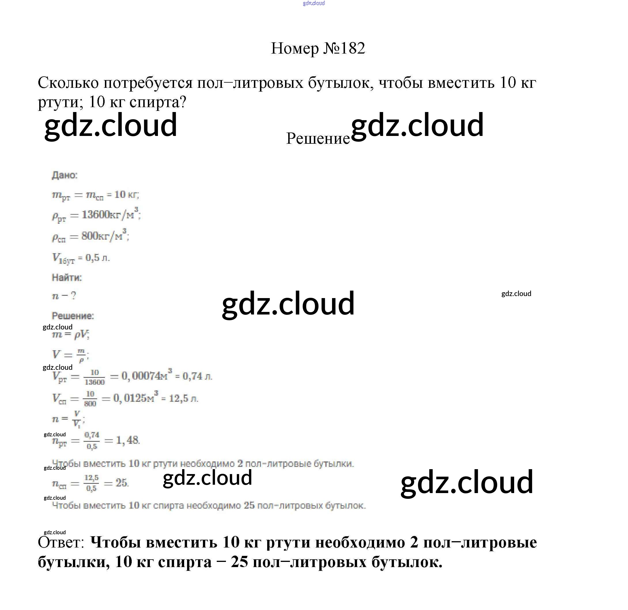 Ответ на задание 182 Сборник вопросов и задач Физика за 7, 8, 9 (седьмой, восьмой, девятый) класс Марон, Позойский Вертикаль 2013