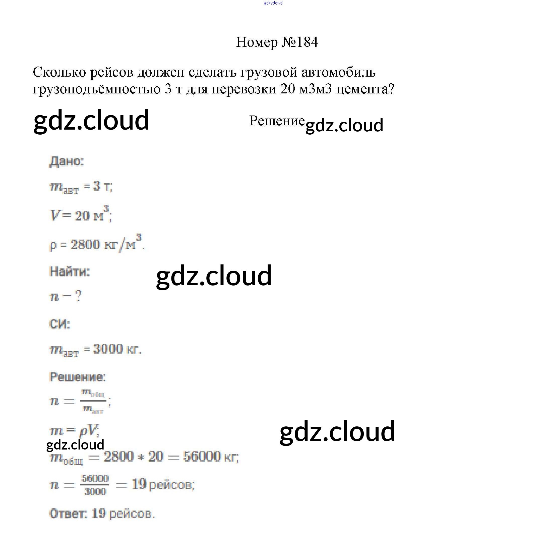 Ответ на задание 184 Сборник вопросов и задач Физика за 7, 8, 9 (седьмой, восьмой, девятый) класс Марон, Позойский Вертикаль 2013