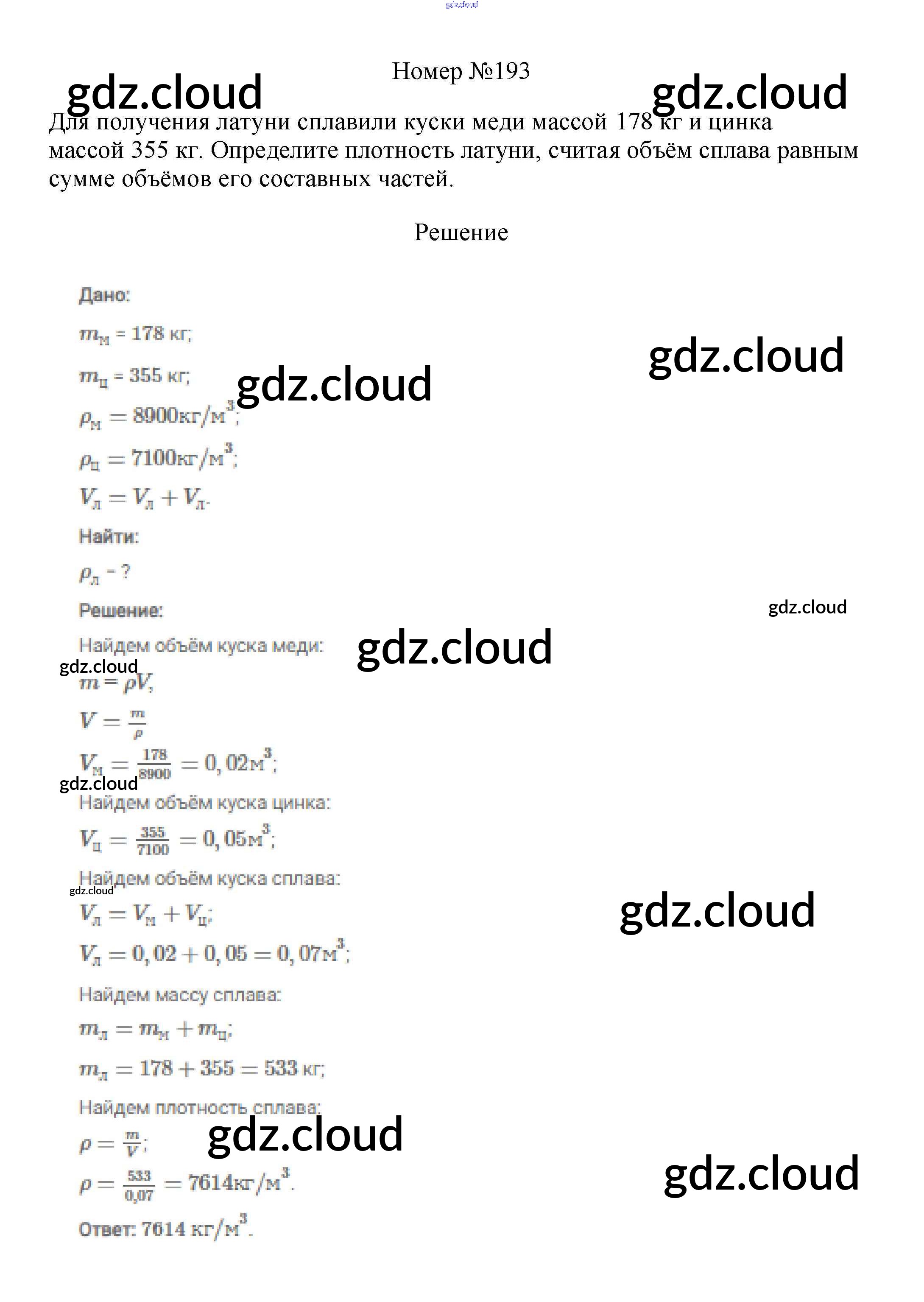 Ответ на задание 193 Сборник вопросов и задач Физика за 7, 8, 9 (седьмой, восьмой, девятый) класс Марон, Позойский Вертикаль 2013