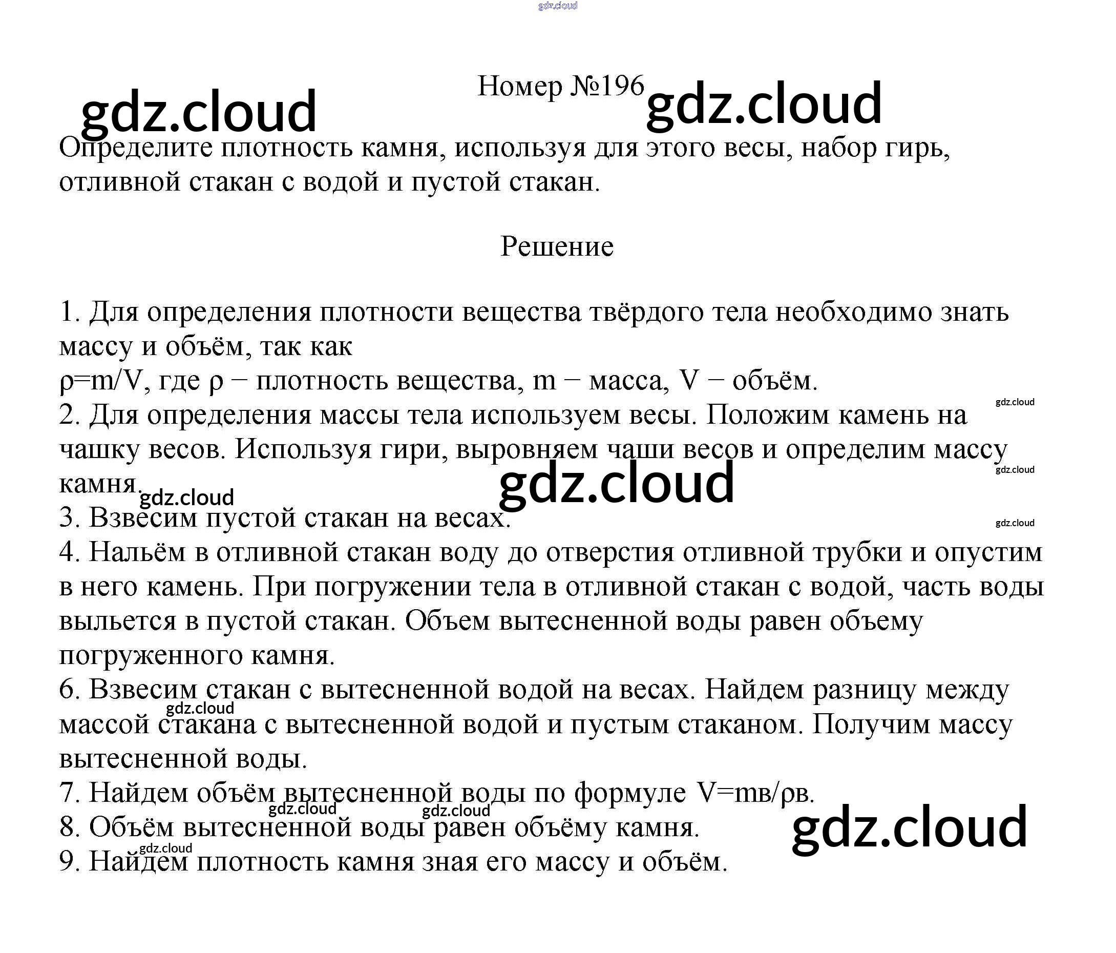 Ответ на задание 196 Сборник вопросов и задач Физика за 7, 8, 9 (седьмой, восьмой, девятый) класс Марон, Позойский Вертикаль 2013